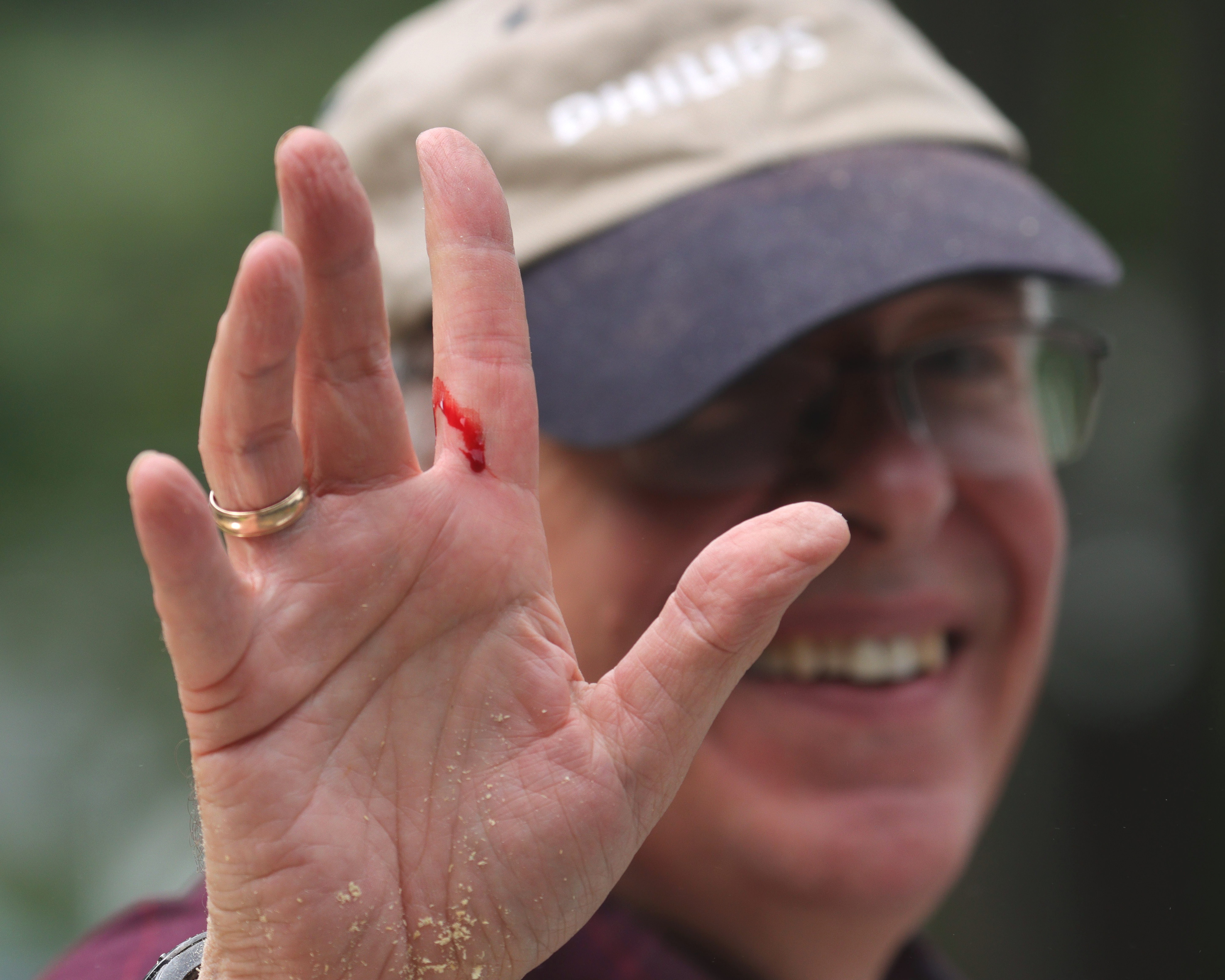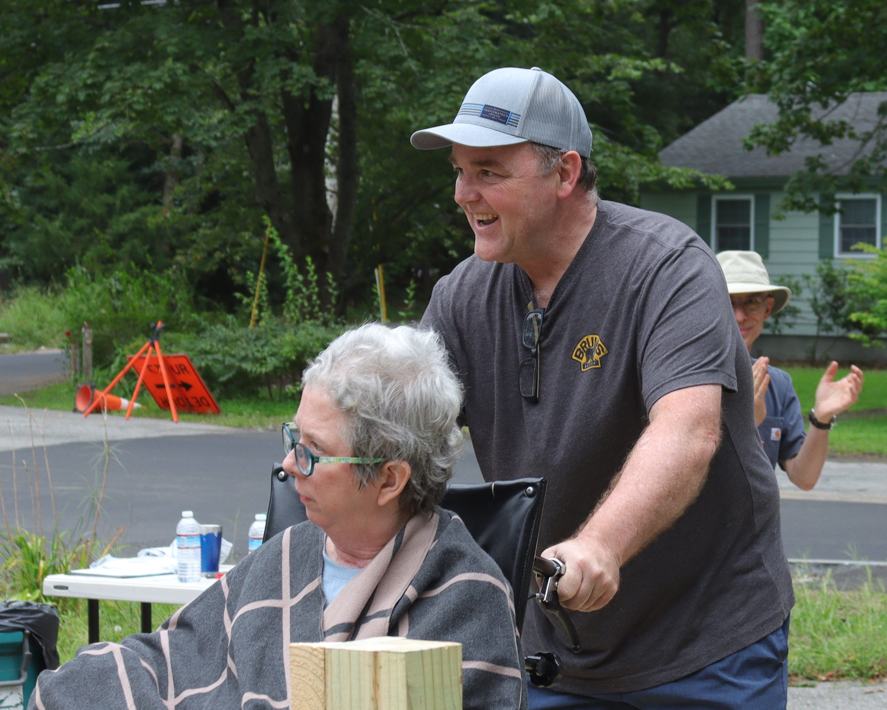 Lastly, an injury, a blessing, an observer from across the street and group pic.